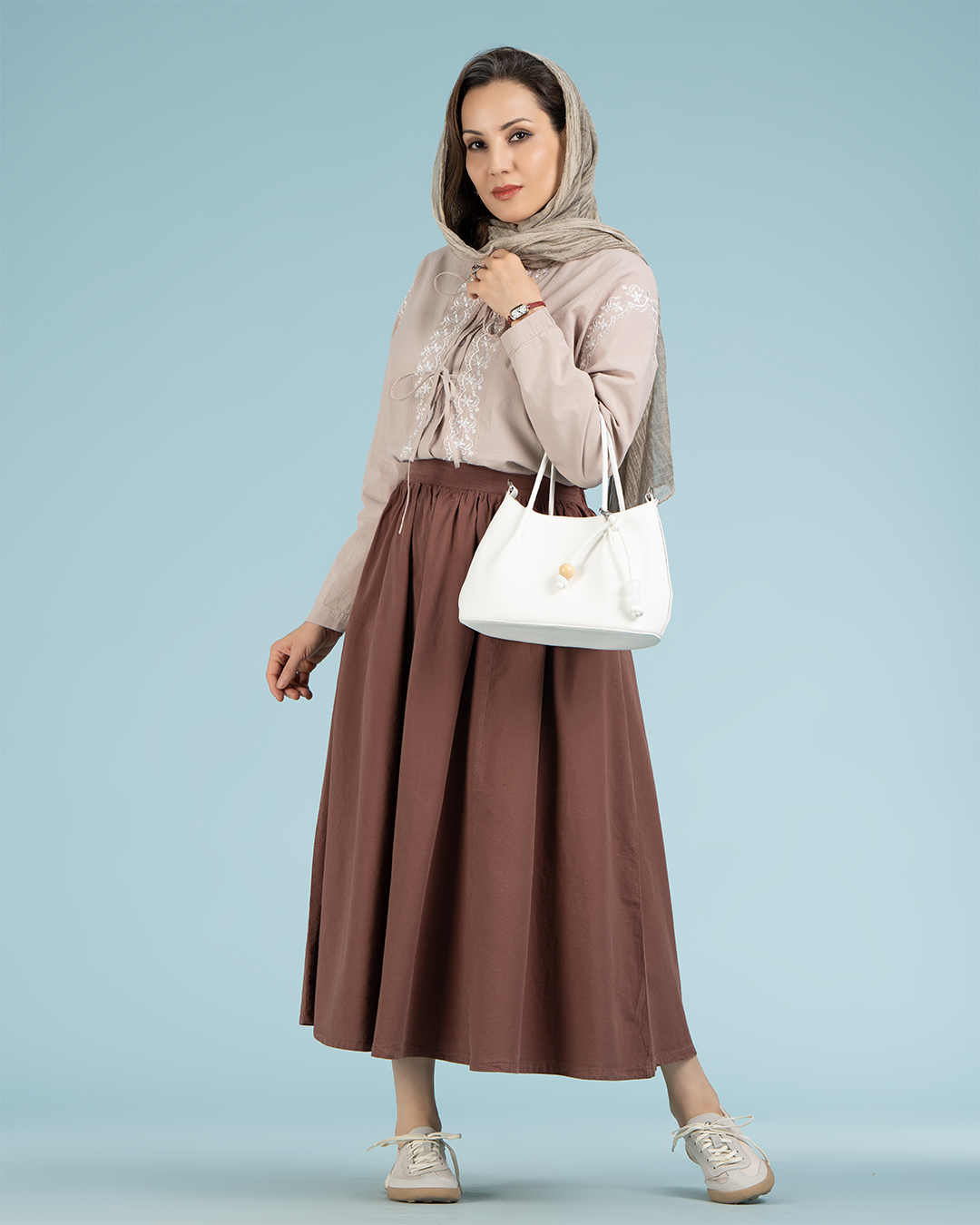 با توجه به تفاوت رنگ ها در صفحه نمایش دستگاههای مختلف ، ممکن است رنگ محصولات در تصویر تا 20 درصد با واقعیت متفاوت باشد ..... پارچه به کار رفته در این مدل ، نخ پنبه از نوع رینگ است که دارای کیفیت بالاتری نسبت به باقی پارچه های پنبه در بازار میباشد......این دامن کمر کش بوده و کش در قسمت پشت دامن کار شده و دامن دارای چین میباشد.