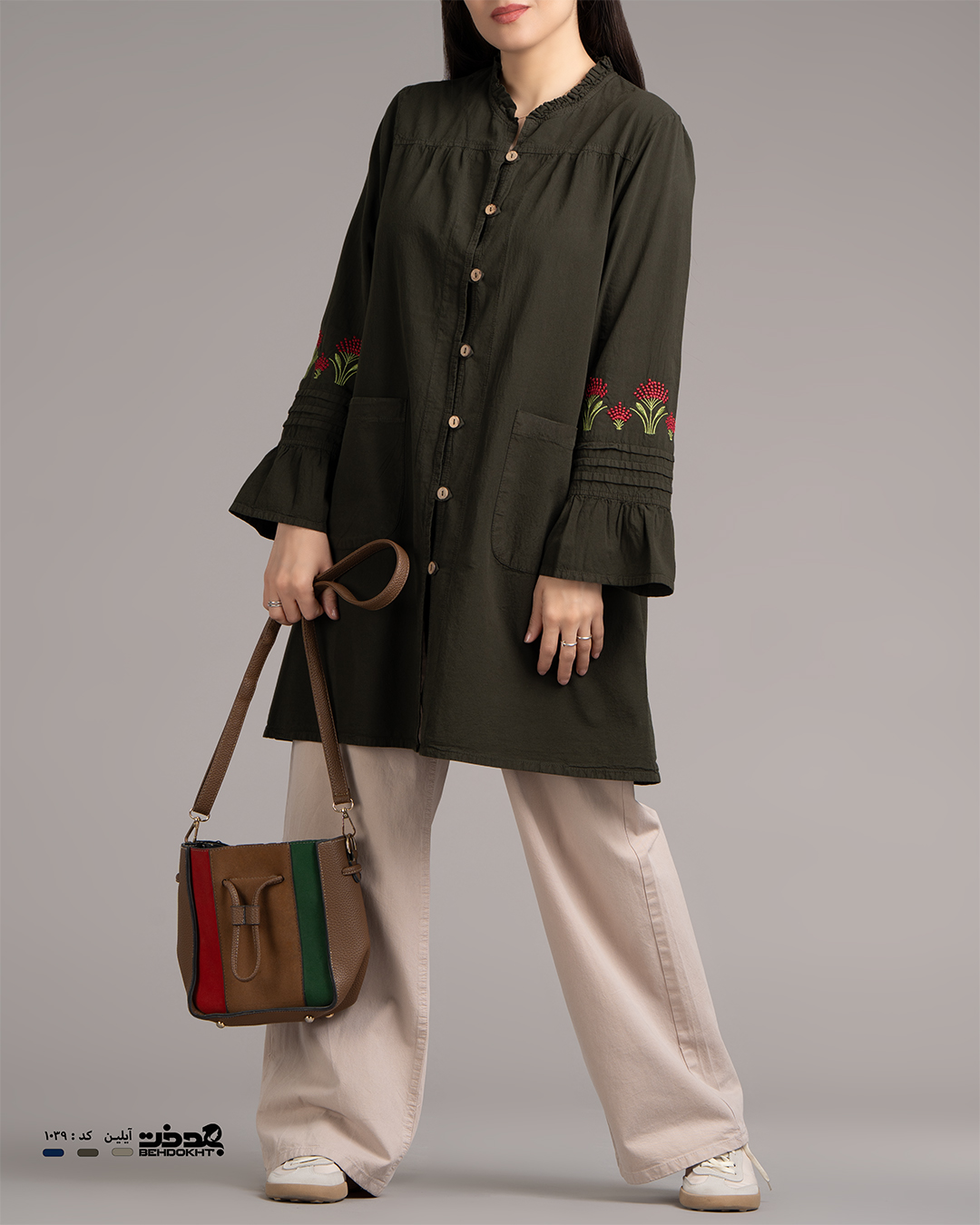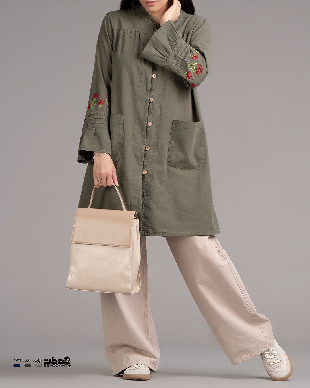 با توجه به تفاوت رنگ ها در صفحه نمایش دستگاههای مختلف ، ممکن است رنگ محصولات در تصویر تا 20 درصد با واقعیت متفاوت باشد ..... پارچه به کار رفته در این مدل ، نخ پنبه از نوع رینگ است که دارای کیفیت بالاتری نسبت به باقی پارچه های پنبه در بازار میباشد.